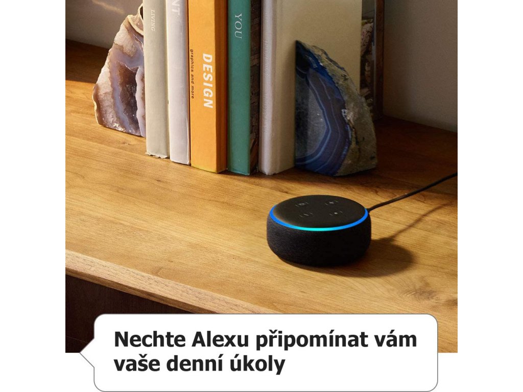 Vždy připravena - Alexa umí přehrávat hudbu, odpovídat na otázky, číst zprávy a předpověď počasí, nastavovat budíky, ovládat kompatibilní zařízení chytré domácnosti a mnoho dalšího.