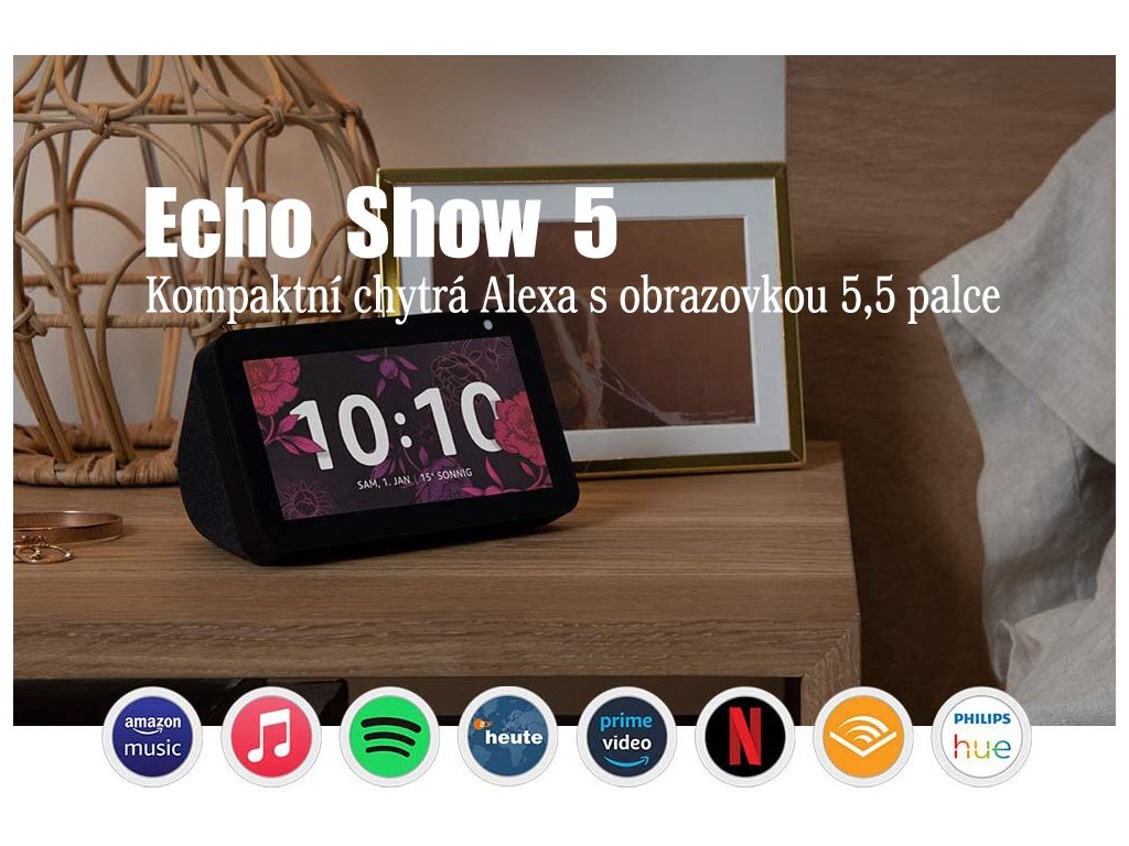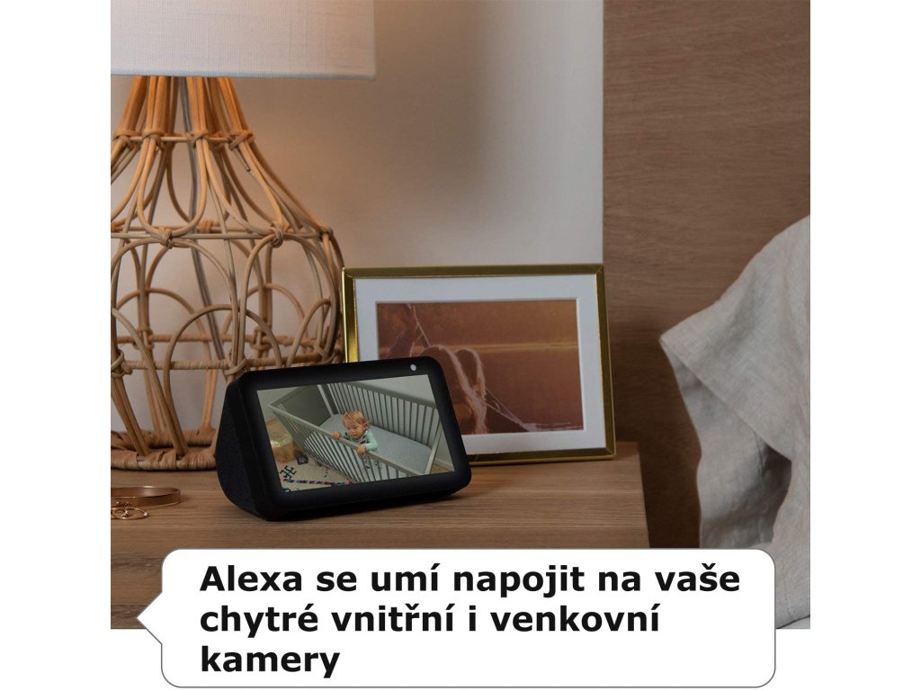 Kompaktní chytrý displej s obrazovkou 5,5 palce.Spravujte kalendáře a seznamy úkolů, poslouchejte informace o počasí, dopravě a vařte podle receptů.Sledujte filmy, zprávy a seriály. Poslouchejte hudbu, rozhlasové stanice a audioknihy.Ovládejte kompatibilní zařízení pomocí hlasových příkazů nebo přes displej.Telefonujte nebo provádějte videohovory s přáteli a členy rodiny, kteří mají kompatibilní zařízení Echo nebo aplikaci Alexa.Přizpůsobte si Vaše zařízení vzhledem hodin podle volby nebo oblíbenou fotografií. Vytvořte si rutiny a budíky, abyste mohli dobře začít den.Ještě lepší ochrana Vašeho soukromí pomocí tlačítka mikrofonu/kamery (zapnuto/vypnuto) nebo integrovaného krytu kamery.