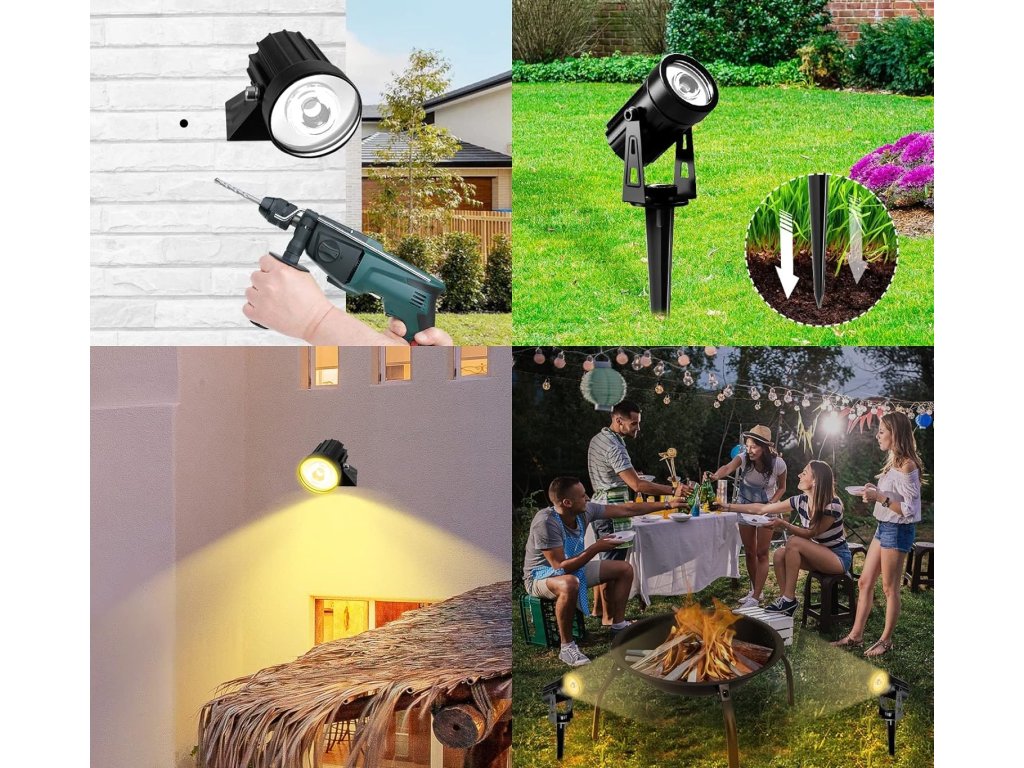 IP65 voděodolný a široké využití: Solární zahradní světlo je vyrobeno z hliníkové slitiny s vynikající tepelnou odvodností a voděodolnou ochranou třídy IP65. Robustní, odolné a ideální pro zahradu, terasu, příjezdovou cestu, schody, bazén a další prostranství.